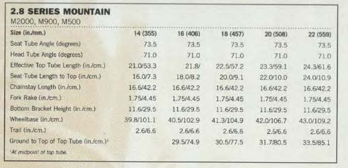 | Data Source | 1995 cannondale catalogue | 1995 cannondale catalogue | 1995 cannondale catalogue | 1995 cannondale catalogue | 1995 cannondale catalogue |