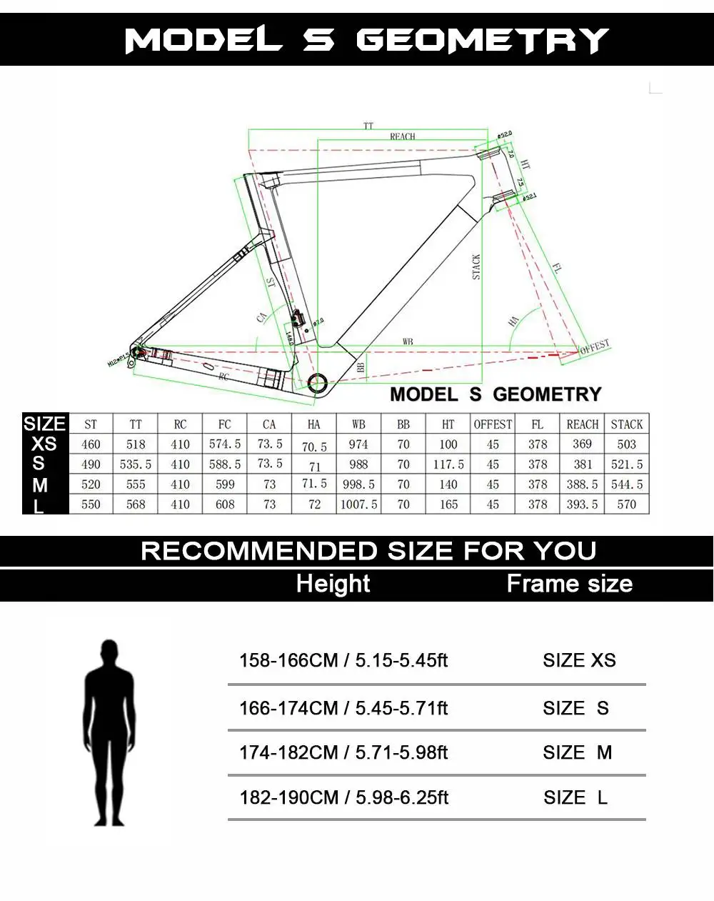 | Head Tube | 98 | 117,5 | 165 | 161 |