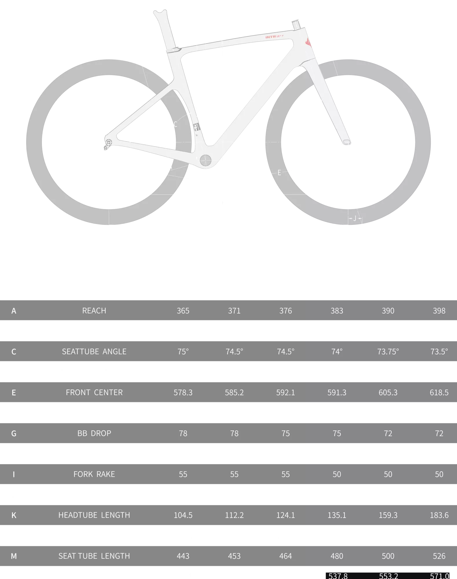 | Seat Tube C-T | 510 | 427 | 478 | 450 | 514 | 581 |