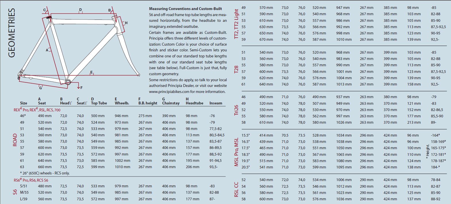 | Seat Tube C-T | 462 | 580 | 454 | 519 | 601 | 567 | 669 | 682 | 787 |