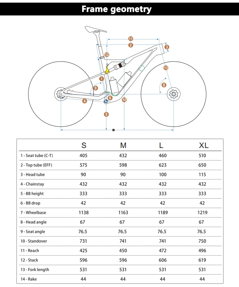 | Chainstay | 443 | 437 | 512 | 426 |